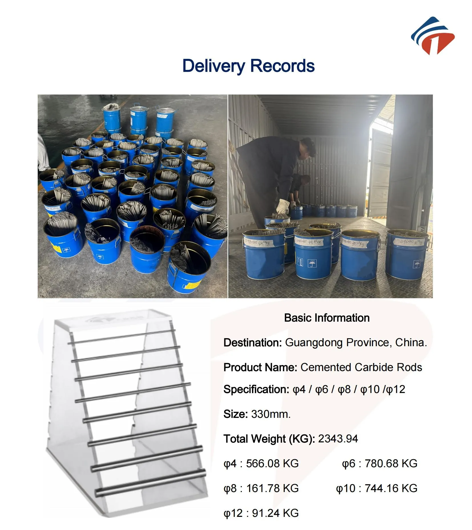 Penghantaran Batang Tungsten Carbide 2349KG Ke GuangDong.
