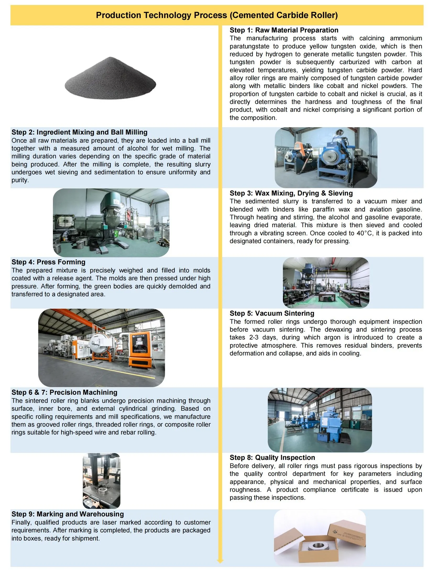 Cincin gulung karbida bersimen (juga dikenali sebagai Cincin Gulung Tungsten Carbide) menawarkan kekonduksian terma yang sangat baik dan mengatasi prestasi gulungan besi tuang dan keluli berkelajuan tinggi generasi pertama dalam rintangan haba, rintangan haus dan kekuatan, dengan pengurangan kekerasan yang minimum pada suhu tinggi. Dibangunkan bersama kilang rod dawai berkelajuan tinggi, ia kini digunakan secara meluas dalam dirian kemasan untuk mengeluarkan dawai berkelajuan tinggi, rebar dan bar keluli cacat.